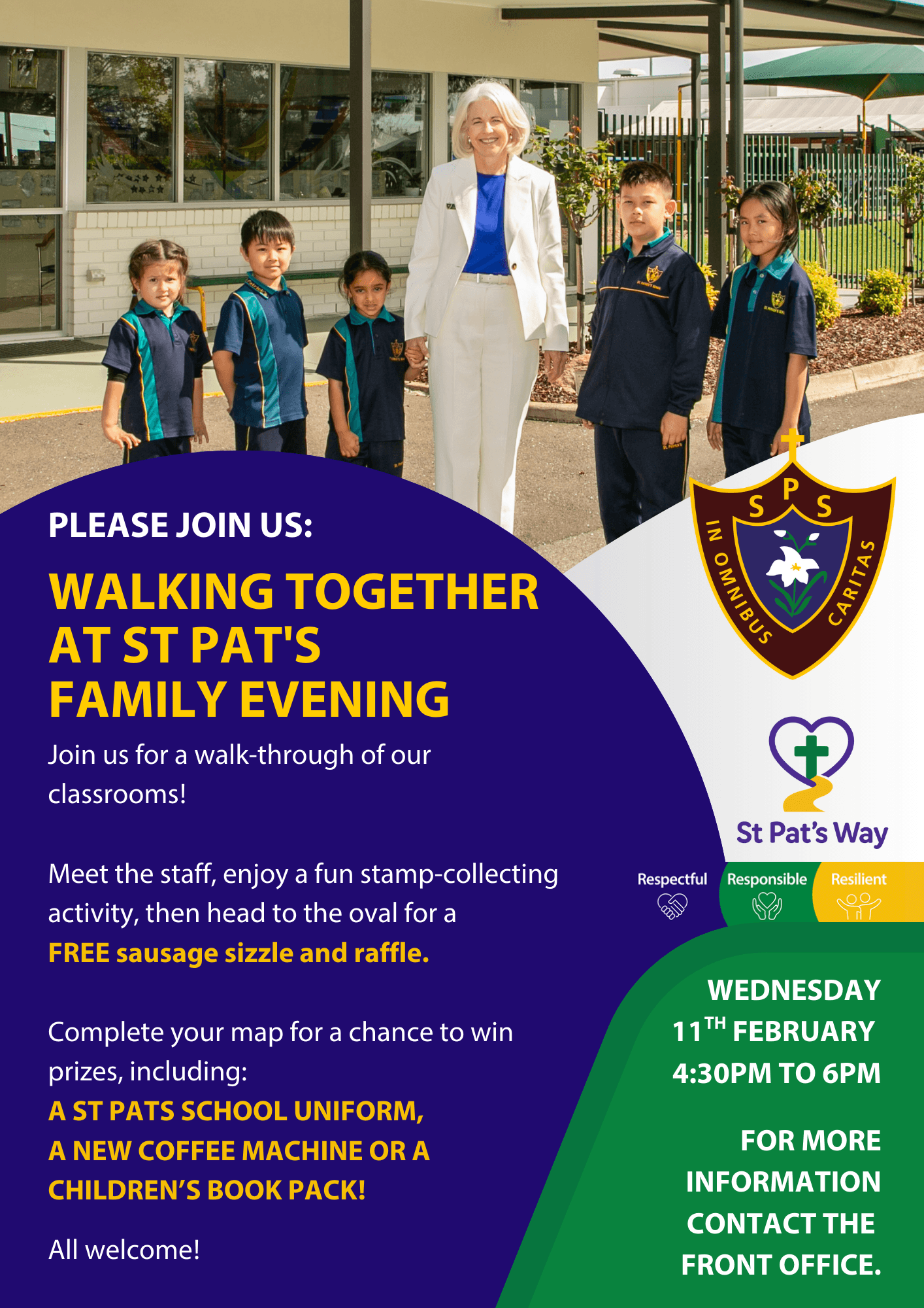 Wednesday 11th February - Walking Together at St Pat's Family Evening: Parents and Caregivers invited