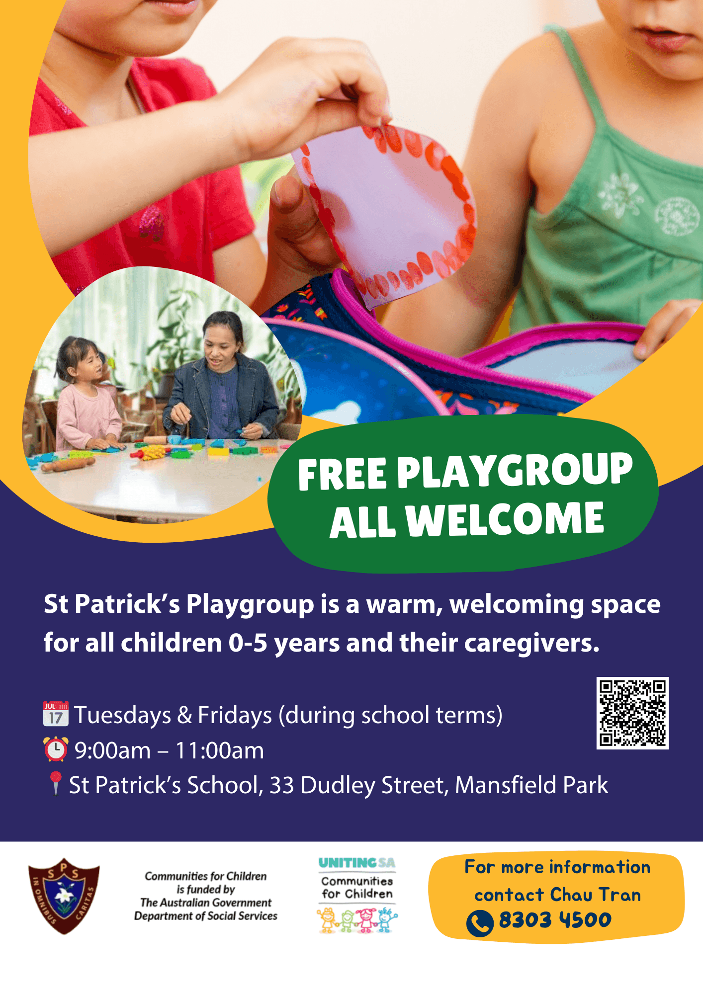St Patrick’s Playgroup is a warm, welcoming space for families with children under 5 years.
